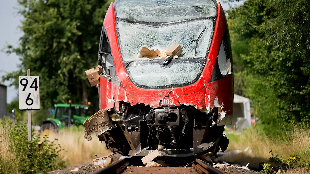 Die Erinnerungen an das verheerende Zugunglück mit 79 Toten in Spanien sind noch frisch, da kracht es schon wieder - diesmal in Deutschland. Mit voller Wucht rast eine Regionalbahn an einem Bahnübergang in einen Sattelzug, reißt diesen in zwei Teile und springt aus den Schienen.