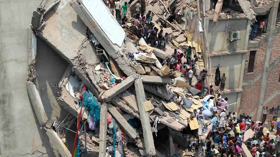 Es ist früher Morgen in Bangladesch, als die Katastrophe eintritt: Ein achtstöckiges Haus stürzt in sich zusammen, es war illegal erbaut. Die Retter versuchen, Menschen noch lebend aus den Trümmern zu bergen. Dabei stoßen sie auf mindestens 152 Tote, mehr als 1000 Verletzte schreien um ihr Leben.