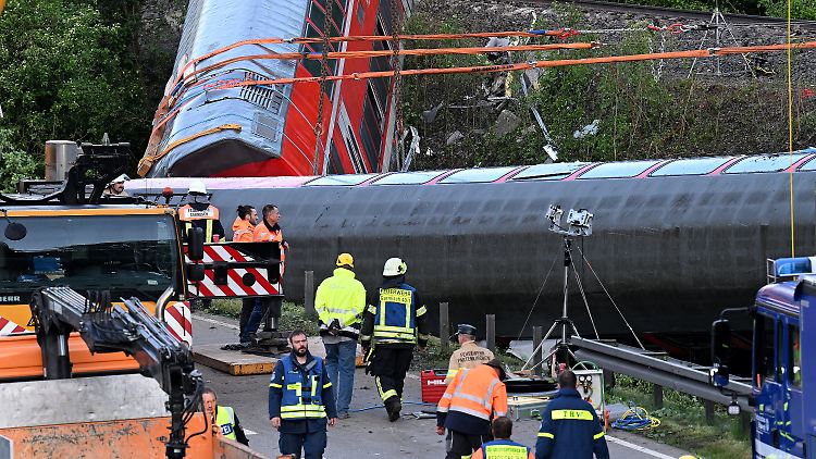 Die Bergungsarbeiten gestalteten sich schwierig. Zwei Versuche, die Waggons anzuheben, scheiterten. Dabei seien auch Hebekissen zum Einsatz gekommen. Die Waggons seien "verdreht und verwunden", sagte der Polizeisprecher. "Das macht die Bergung so schwierig." Helfen sollte ein schwerer Bergekran, der bis zu 120 Tonnen heben kann und am Vormittag an der Unfallstelle erwartet wurde. "Man muss Schritt für Schritt vorgehen", sagte der Sprecher.
