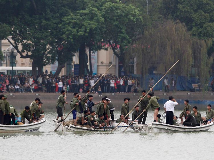 Eine seltene und als Symbol der Unabhängigkeit Vietnams verehrte Riesenschildkröte ist unter dem Jubel tausender Zuschauer zur medizinischen Behandlung eingefangen worden. Ein erster Versuch war Anfang März gescheitert, nachdem das kratzbürstige Tier das Netz im Hoan-Kiem-See in Hanoi durchbrochen hatte.