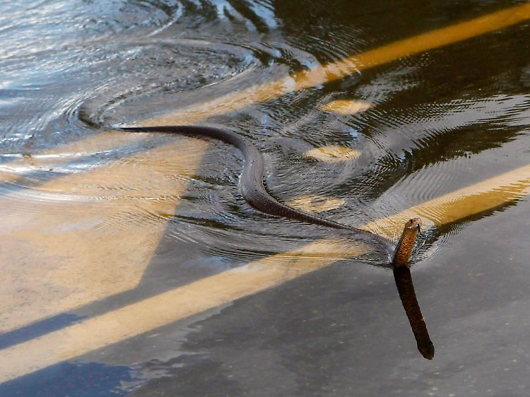 Auch außerhalb von Rockhampton stehen weiter riesige Landstriche unter Wasser. Dort, wo das Wasser abfließt, droht jetzt unter anderem Gefahr durch Schlangen. Es sind die schlimmsten Überschwemmungen in der Region seit 50 Jahren. "Das ist ein Problem, mit dem die Leute konfrontiert sind", sagte Greg Goebel, Chef des Roten Kreuzes, im Rundfunk. "Besonders in Häusern, die teilweise trocken geblieben sind, dort dürfte sich einiges Getier tümmeln."