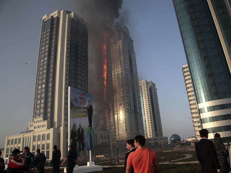 03.04.2013, 19:33 UhrAus Dutzenden Stockwerken eines neu gebauten Wohnhauses im russischen Grosny schlagen Flammen. Das Gebäude ist so neu, dass bislang nur wenige Wohnungen bezogen sind. Auch Gérard Depardieu besitzt einige Zimmer.