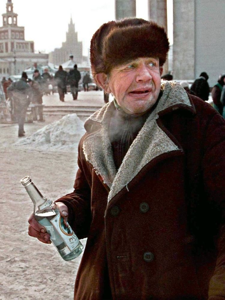 Ein Obdachloser hält in Moskau eine Flasche Wodka in der Hand - in Russland aber auch anderen ehemaligen Sowjetrepubliken ist der Alkoholismus ein großes Problem.