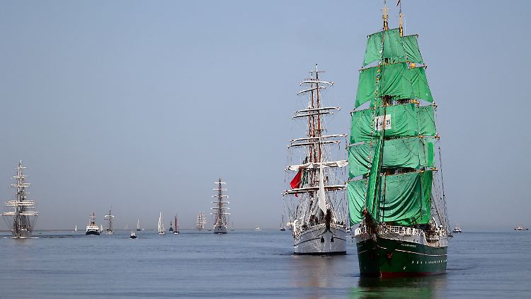 Die Einlaufparade in Bremerhaven wird von dem Segelschulschiff "Alexander von Humboldt II" angeführt, zahlreiche Freizeitboote begleiten die Schiffe. Tausende Zuschauer drängten sich in praller Sonne an der Promenade, um einen Blick auf die Windjammer zu erhaschen. Auch Bundespräsident Frank-Walter Steinmeier segelt an Bord des Segelschulschiffs "Gorch Fock" mit. "Moin", grüßte Steinmeier und winkte den Schaulustigen zu.
