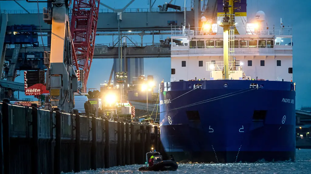 Umstrittener Castor-TransportSchiff mit Atommüll legt in Weser-Hafen an