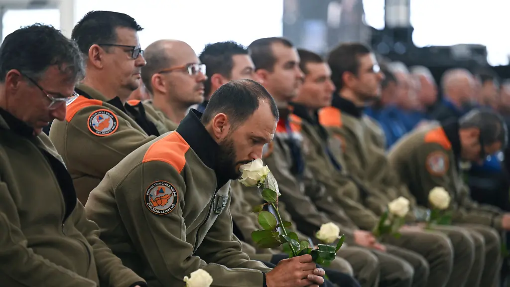 Die Todesopfer stammten aus 19 Ländern, neben der Schweiz auch unter anderem neun aus Frankreich und sechs aus Italien. Deswegen nahmen auch der französische Staatschef Emmanuel Macron und Italiens Präsident Sergio Mattarella an der Trauerfeier in Martigny gut 50 Kilometer südwestlich von Crans-Montana teil. Auch zahlreiche Rettungskräfte zählten zu den etwa tausend Gästen, die zur Erinnerung an die Brandopfer weiße Rosen in den Händen hielten.