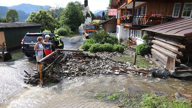 Auch über Teile Bayerns zogen schwere Gewitter mit Starkregen und Hagel. In Kempten legte ein Blitzschlag das Stellwerk der Bahn still, auf der Strecke bis Kaufering standen Züge zeitweise. In Oberstdorf gingen Muren ab, mehrere Straßen wurden von Geröll und Wasser blockiert, Keller und Ställe liefen voll Wasser.