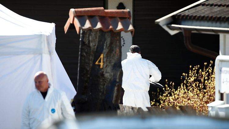 Polizisten der Spurensicherung arbeiten auf dem Grundstück des Multimillionärs Tom Hagen in Lørenskog.
