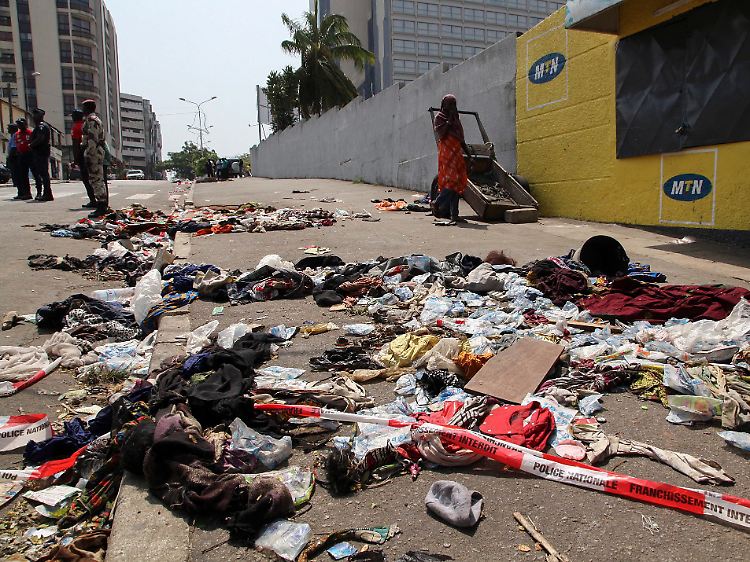 Unter den Toten und Verletzten seien sehr viele Kinder und Jugendliche, berichtete die staatliche Nachrichtenagentur AIP. Noch am Dienstagvormittag waren am Unglücksort zahllose Schuhe und zerrissene Kleider zu sehen. Viele verzweifelte Eltern suchten nach ihren vermissten Kindern. Es ist eine Tradition in der Elfenbeinküste, dass die Familien mit allen Kindern zu Silvester auf die Straße gehen und feiern.
