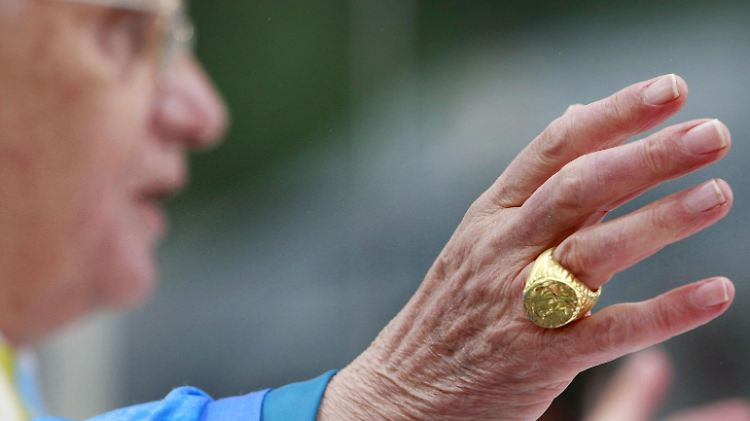 Zum Abschied küssen die Kardinäle den Ring des Papstes. Der so genannte Fischerring zeigt den Apostel Petrus, der ursprünglich ein Fischer war, wie er ein Netz ins Boot zieht. Er trägt zudem den Namen des aktuellen Papstes auf Lateinisch: "Benedictus XVI". Seinen Ring muss Benedikt jedoch heute Abend, nach dem offiziellen Ende seiner Amtszeit, abgeben. Der Camerlengo, Kardinal Tarcisio Bertone, wird den Ring mit einem Hammer zerschlagen. Alle Objekte, die direkt mit dem Pontifikat in Verbindung stehen, müssen zerstört werden. Benedikts Vorgänger Johannes Paul II. trug übrigens nur einen einfachen Goldring mit einem Kreuz.