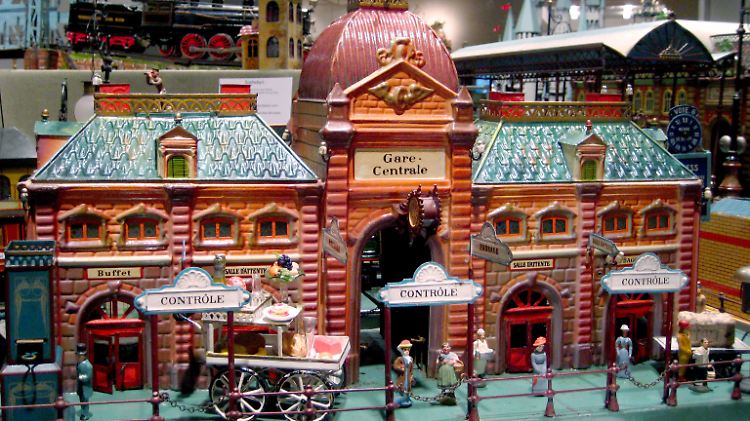 Erst beim genaueren Hinsehen wird der beträchtliche Wert der Kollektion verständlicher. Die Spielzeugwaren und -eisenbahnen von deutschen und US-amerikanischen Herstellern wie Märklin, Bing, Ernst Plank, Carette und Rock & Graner stammen aus den Jahren von 1850 bis 1940, dem "Goldenen Zeitalter" der Spielzeugherstellung. Die meisten Sammelstücke sind handgefertigt und in einem hervorragenden Zustand. Das war dem Sammler, Jerry Greene, sehr wichtig. Die Dächer eines jeden Blech-Gebäudes, Zugs oder Bahnhofs lassen sich abnehmen. Darunter stehen und sitzen minutiös ausgearbeitete Miniatur-Menschen aus Blei mit kunstvollen Hüten und liebevoll gemalten Gesichtern in Räumen, Zugabteilen und Wartehallen.