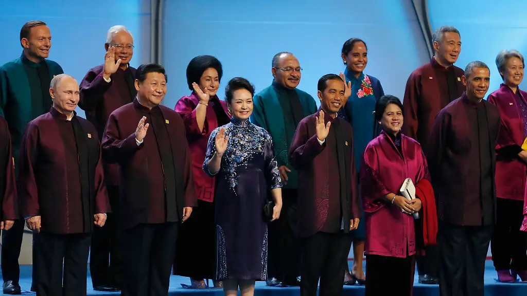 Über Geschmack lässt sich bekanntlich streiten. Fest steht allerdings: Dunkles Lila gehört eher nicht zu den Farben, die Barack Obama, Wladimir Putin oder Xi Jinping tragen sollten. Das wurde eindrucksvoll auf dem Asia-Pazifik-Gipfel demonstriert, auf dem die drei Staatschefs mit ihren Leidensgenossen in traditionelle chinesische Gewänder gesteckt wurden.