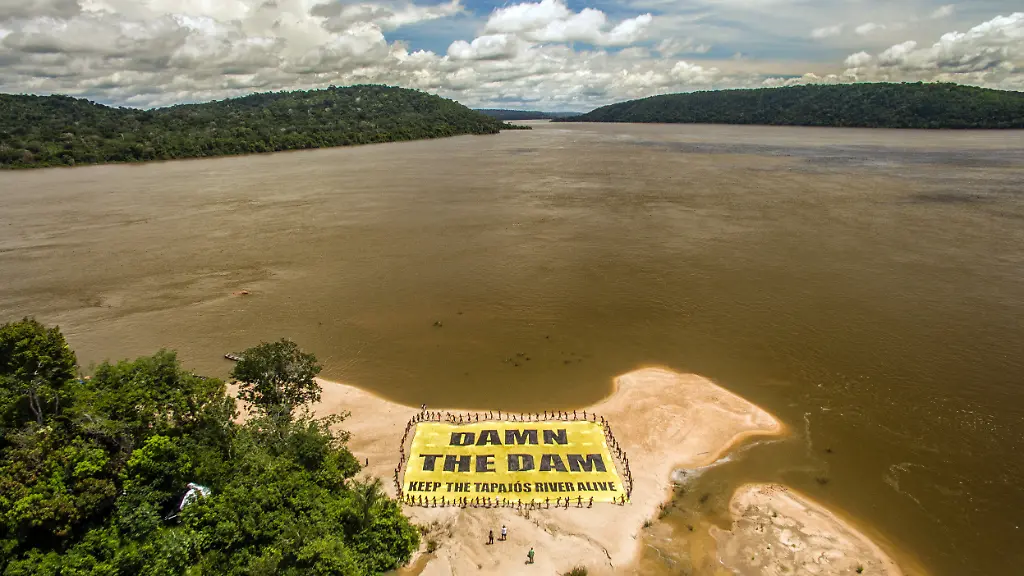 Es könnte mit einem Wasserbecken fast der Größe New Yorks die Lebensgrundlagen der Munduruku zerstören. Zudem könnten hier große Gebiete des Regenwaldes dem Energie-Projekt zum Opfer fallen. An einer für die rund 12.000 Indigenas heiligen Stelle des Flusses im Bundesstaat Pará wurde ein großes Banner entrollt, um gegen den Bau zu protestieren.