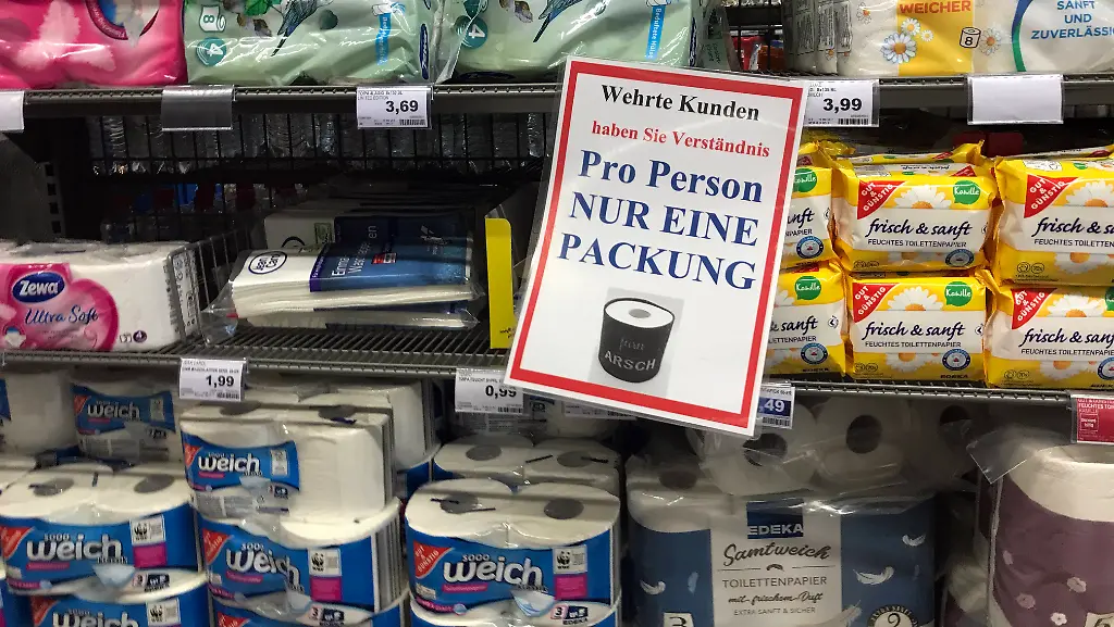 In vielen Supermärkten geraten Kunden und Angestellte wegen der begrenzten Abgabe von Toilettenpapier immer häufiger aneinander, wenn gleich mehrere Packungen im Einkaufswagen landen. Aus anfänglichen Beleidigungen werden schnell handgreifliche Auseinandersetzungen.