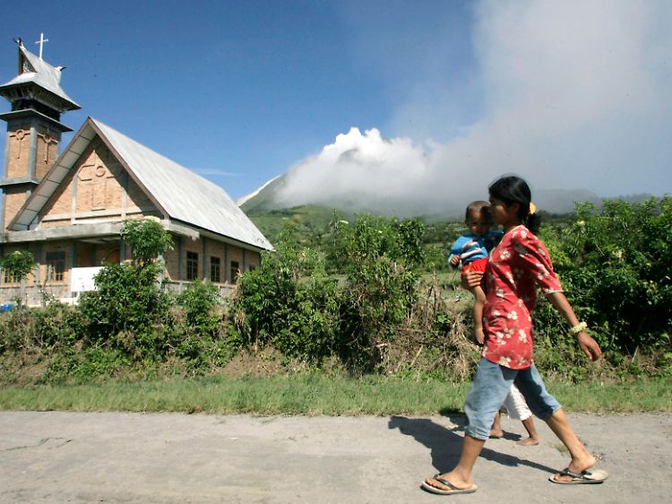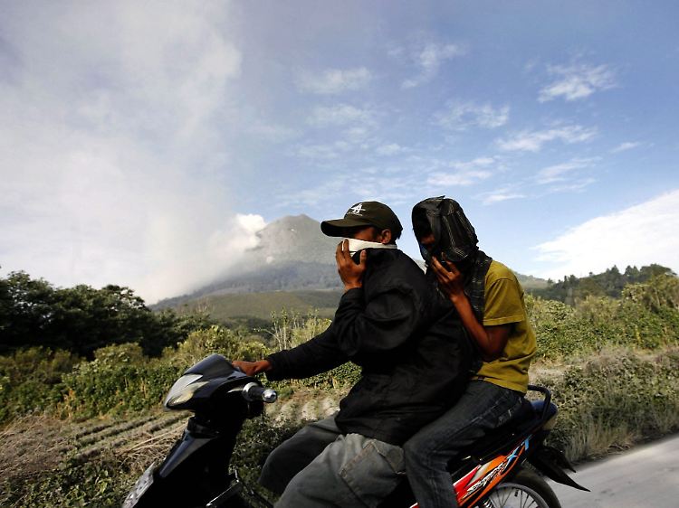 Vier Jahrhunderte schlief der Vulkan, jetzt bricht er mit einem Schlag aus. Feuer, Lava, Asche - mehr als 10.000 Menschen im Norden der Insel Sumatra verlassen Hals über Kopf ihre Dörfer.