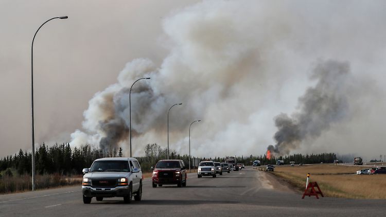Das Feuer war vor einigen Tagen südlich der 100.000-Einwohner-Stadt in der Provinz Alberta ausgebrochen, starker Wind trieb die Flammen am Dienstag bis in die Stadt. In der Nacht zum Mittwoch ordneten die Behörden die vollständige Räumung der Stadt an. Viele Menschen flohen Richtung Norden, doch dort drohten sie nun erneut von den Flammen eingeschlossen zu werden.