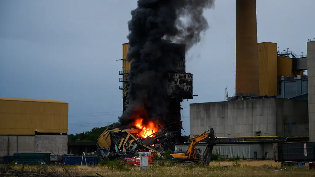 Ein Feuer auf dem Gelände eines ehemaligen Steinkohle-Kraftwerks in Porta Westfalica an der Grenze Nordrhein-Westfalens zu Niedersachsen hat die Löschkräfte vor große Herausforderungen gestellt. Eine Gefahr für die Bevölkerung bestand nach ersten Erkenntnissen nicht - die Feuerwehr dagegen musste sich nach dem Einsturz eines Gebäudes zunächst von dem Brandherd zurückziehen, um eine Gefährdung der Einsatzkräfte auszuschließen, wie ein Sprecher der Feuerwehr mitteilte.