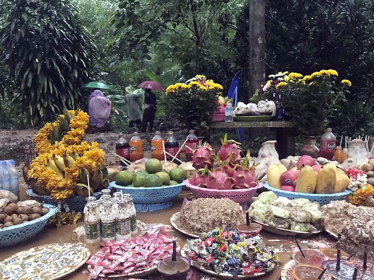 Die Jungen und ihr Trainer sind seit Samstag in der Höhle in der nordthailändischen Provinz Chiang Rai eingeschlossen. Heftiger Regen, so vermuten die Behörden, löste eine Sturzflut aus und schnitt der Gruppe den Weg ins Freie ab. Die am Eingang zurückgelassenen Schuhe und Fahrräder sind stumme Zeugnisse des Besuchs. Eigentlich warnen dort Schilder davor, die Höhle während der Regenzeit von Juni bis November zu betreten.