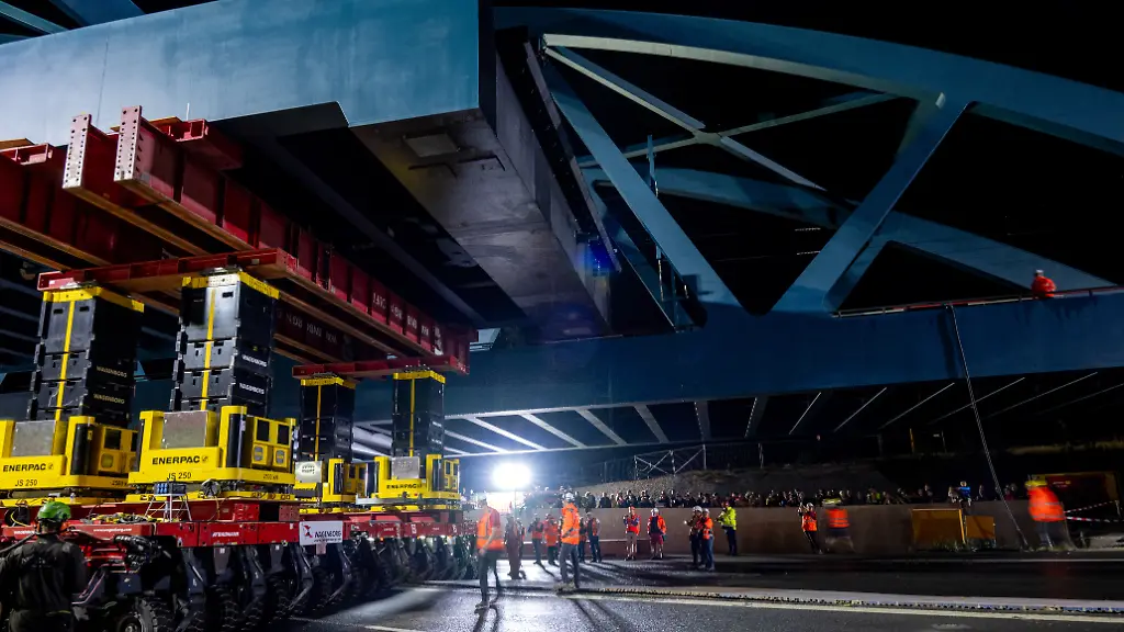 In der Nacht zum Sonntag wuchten Spezialfahrzeuge eine neue Eisenbahnbrücke über die Autobahn 73 in Bayern. Ein Akt, der sich mehrere Stunden zieht, bis die Brücke endlich ihr Ziel erreicht. Sie dürfte den Zugverkehr zwischen Bamberg und Nürnberg entlasten.