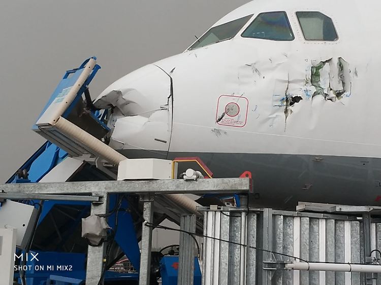 Bilder aus Antalya: Umherfliegende Trümmer beschädigten diesen Verkehrsjet.
