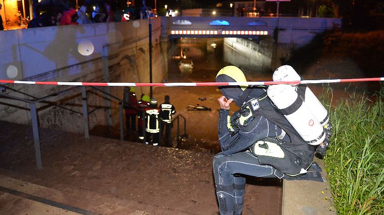 Vermutlich sei zuvor ein Kanaldeckel weggespült worden, sagt der Polizeisprecher. Dann sei wohl ein extremer Sog entstanden. Die Unterführung läuft in der Nacht des verheerenden Unwetters bis knapp unter die Decke mit Wasser voll, wie das Video eines Anwohners zeigt. "Das ist so ein großer Schock für die Menschen hier", sagt Stadtsprecher Markus Herrmann. Die Gmünder Feuerwehr zeigt sich "erschüttert über den Tod des ehrenamtlichen Feuerwehrkameraden".