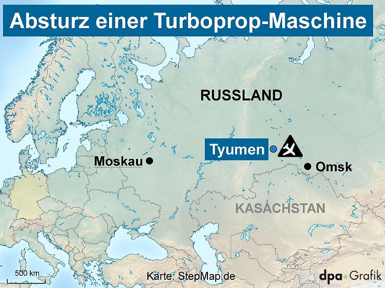 Die zweimotorige Turboprop Maschine vom Typ ATR-72 mit 39 Passagieren und vier Besatzungsmitgliedern war auf dem Weg in die nordsibirische Ölstadt Surgut. Fernsehbilder zeigten das in zwei Teile auseinandergebrochene Flugzeug auf einem verschneiten Feld bei Tjumen, rund 1700 Kilometer östlich von Moskau.