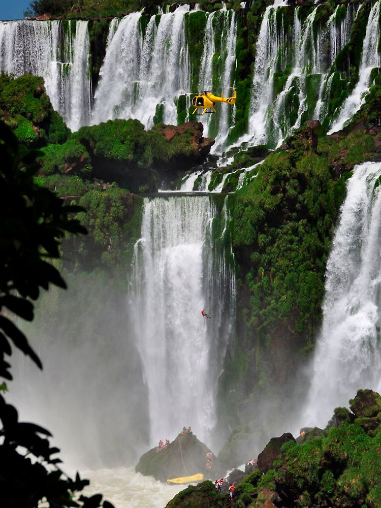 Die Iguazú-Fälle an der Grenze zu Brasilien etwa 1400 Kilometer nördlich der Hauptstadt Buenos Aires sind die größten Wasserfälle der Welt. Das Naturschauspiel lockt jedes Jahr Millionen Touristen an. Viele von ihnen lassen sich in Booten unterhalb der Fälle bis dicht an die herabstürzenden Wassermassen fahren.