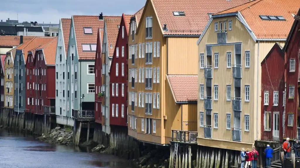Am Nidelva in Trondheim stehen bunte Lagerhäuser. (Foto: dpa-tmn)