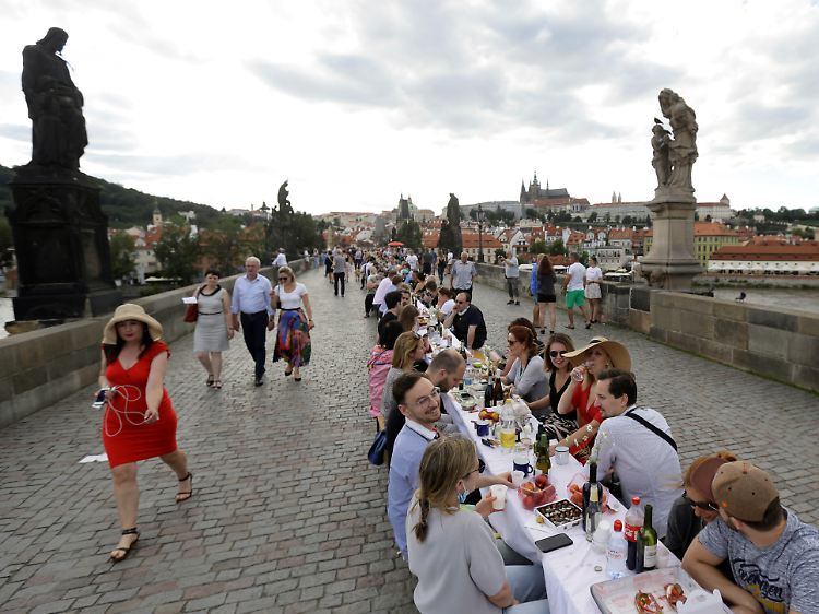 Noch Ende Juni hatten zahlreiche Menschen auf der Prager Karlsbrücke ein Ende der Maskenpflicht zelebriert.
