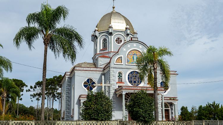 "Ich habe nichts über Brasilien gewusst und mir Indigene und Regenwald vorgestellt", sagt Anastasia Ivanova. Die 22-Jährige Ukrainerin sitzt mit der Mutter und den Schwestern in einem Apartment im Zentrum von Prudentópolis. "Ich wusste nicht einmal, welche Sprache in Brasilien gesprochen wird." Umso überraschter war die junge Frau, dass in der Stadt Ukrainisch die zweite offizielle Sprache ist. Prudentópolis ist ein beschaulicher Ort, Dutzende Kirchen mit Zwiebeltürmen und Kuppeln schmücken die Stadt und die Umgebung, rund drei Viertel der 53.000 Einwohner sind Nachkommen von Ukrainern. Insgesamt hat Brasilien rund 600.000 ukrainischstämmige Einwohner, die vor allem im Süden leben.
