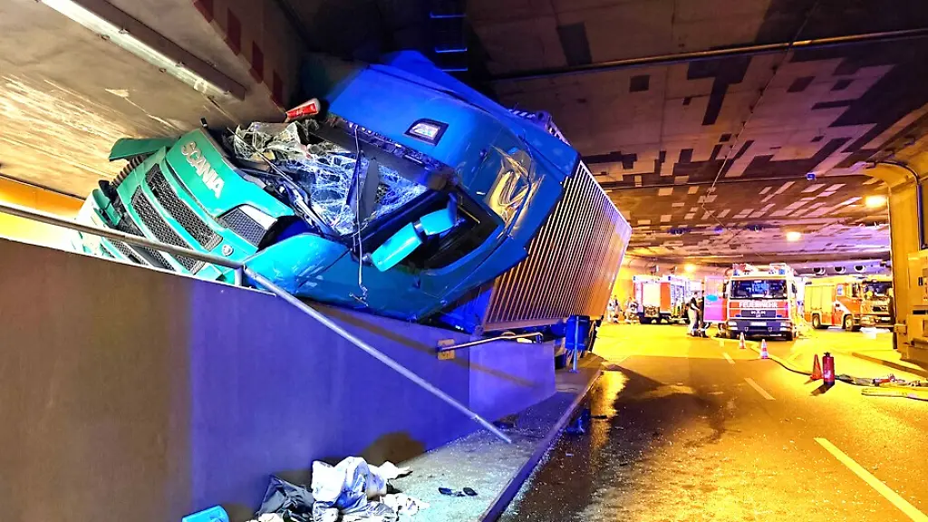 Spektakulärer Unfall in BerlinBetrunkener Fahrer manövriert Lkw zwischen Seitenwand und Tunneldecke