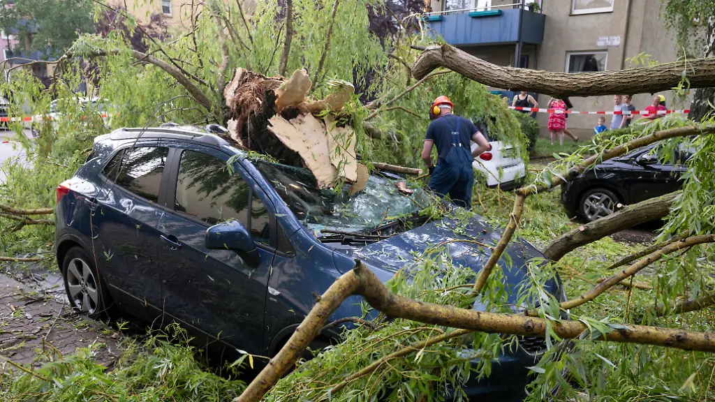 Abgedeckte Dächer, umgestürzte Bäume, überflutete Straßen und teils golfballgroße Hagelkörner: Tief "Lambert" ist am Nachmittag über den Westen und den Südwesten Deutschlands hinweggezogen. Größere Schäden wurden bis zum Abend nicht bekannt.