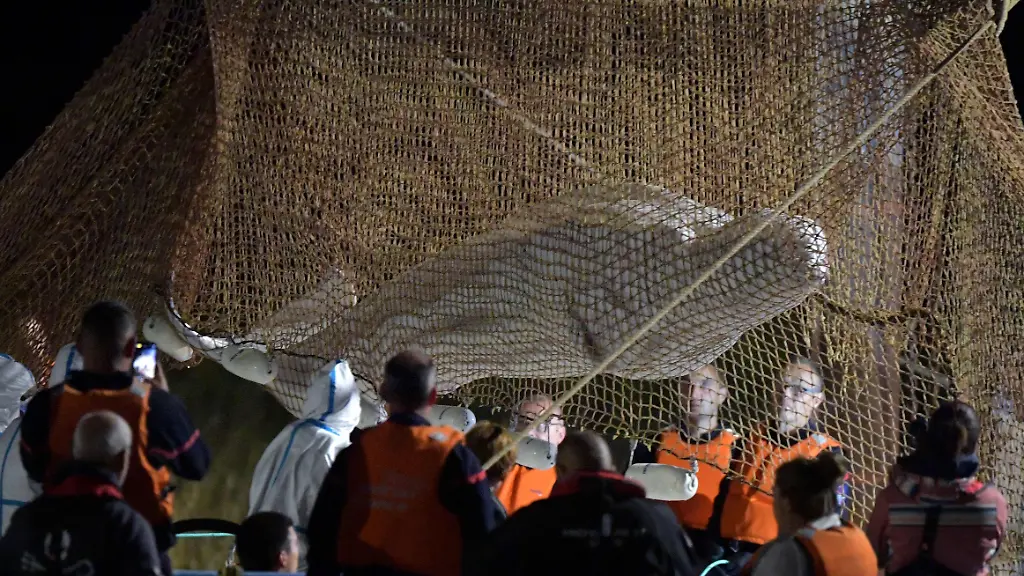 Der Belugawal wurde dann zunächst auf einem Frachtkahn abgelegt, wo sich umgehend Tierärzte um ihn kümmerten. Die aufwendige Rettungsaktion in der Normandie, an der unter anderem 24 Taucher beteiligt waren, hatte am Dienstagabend kurz vor 22 Uhr begonnen. Es dauerte rund sechs Stunden, bis der Belugawal eingefangen und aus dem Wasser gehoben werden konnte.