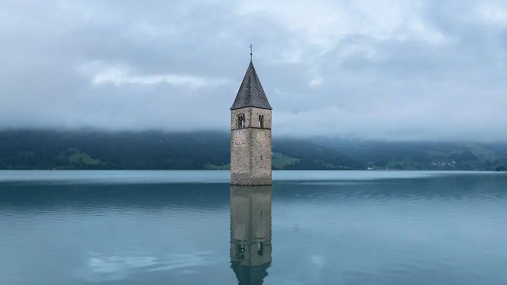 Mitte des 20. Jahrhunderts werden für einen Speichersee in Südtirol zwei Dörfer geflutet. Nur ein mittelalterlicher Kirchturm ragt seitdem aus dem Wasser und erinnert an die versunkenen Orte. Mehr als siebzig Jahre später erscheinen die Ruinen wieder an der Oberfläche. Wer sie sehen will, muss sich beeilen.