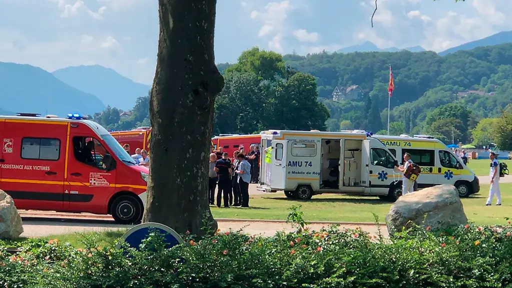 Die Zahl der lebensgefährlich verletzten Menschen bei dem Messerangriff im ostfranzösischen Annecy hat sich auf fünf erhöht. Die vier verletzten Kleinkinder und ein Erwachsener schwebten in Lebensgefahr, sagte die Staatsanwältin Line Bonnet-Mathis in Annecy. Ein weiterer Erwachsener sei leicht verletzt. Bei den schwer verletzten Kindern handele es sich um zwei französische, ein britisches und ein niederländisches Kind, sagte die Staatsanwältin. Frühere Berichte über ein verletztes deutsches Kind hätten auf einer Verwechslung beruht.