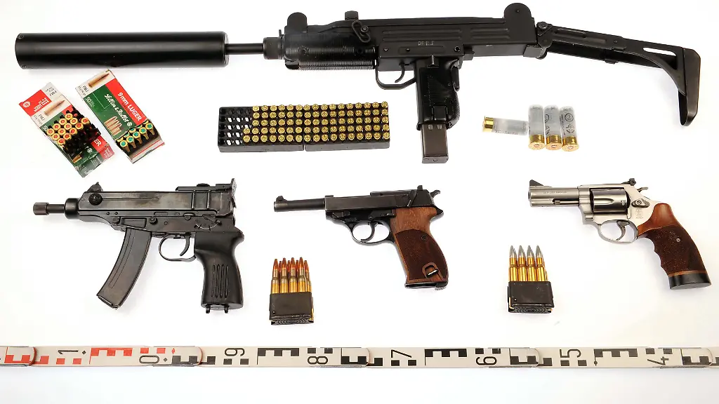 Die Polizei hat in Flensburg das bisher größte Waffenlager in der Rockerszene Schleswig-Holsteins ausgehoben. Bei der Durchsuchung einer Autowerkstatt seien am Montag Maschinenpistolen, Pumpguns, Schrotflinten, Revolver, Munition und sprengstoffähnliche Substanzen gefunden worden, sagte Detlev Zawadzki vom Landeskriminalamt in Kiel. "Wir sehen klar einen Bezug zur Rockerszene", ergänzte sein Kollege Jürgen Sievers. Die Waffen seien einsatzbereit gewesen - "man hätte, ich sag' das jetzt mal so, jederzeit in den Krieg ziehen können".