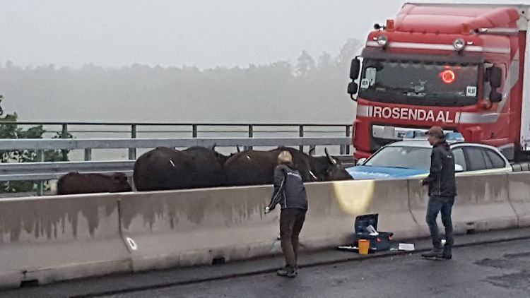 Tierischer Besuch auf der Autobahn: Die ausgebüxten Wasserbüffel verursachten einen Stau von zwischenzeitlich zehn Kilometern.