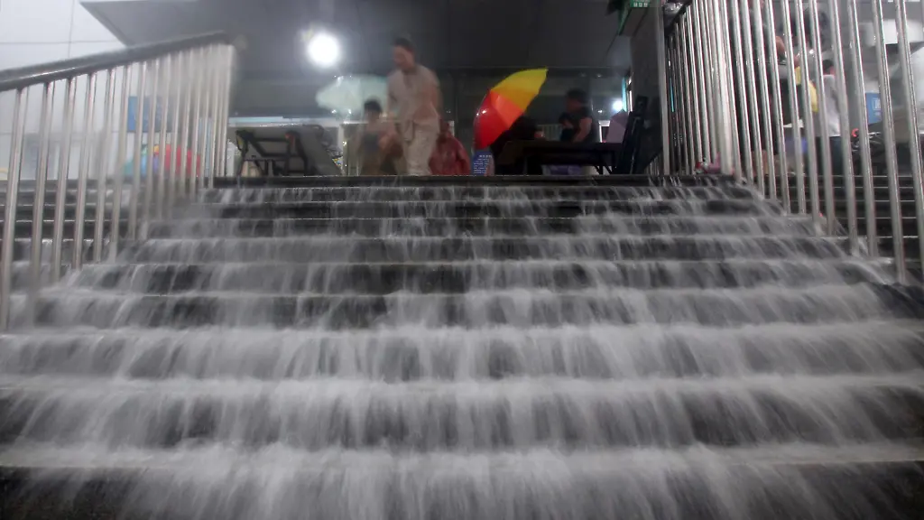 Das Wasser strömt in eine U-Bahnstation. (Foto: REUTERS)