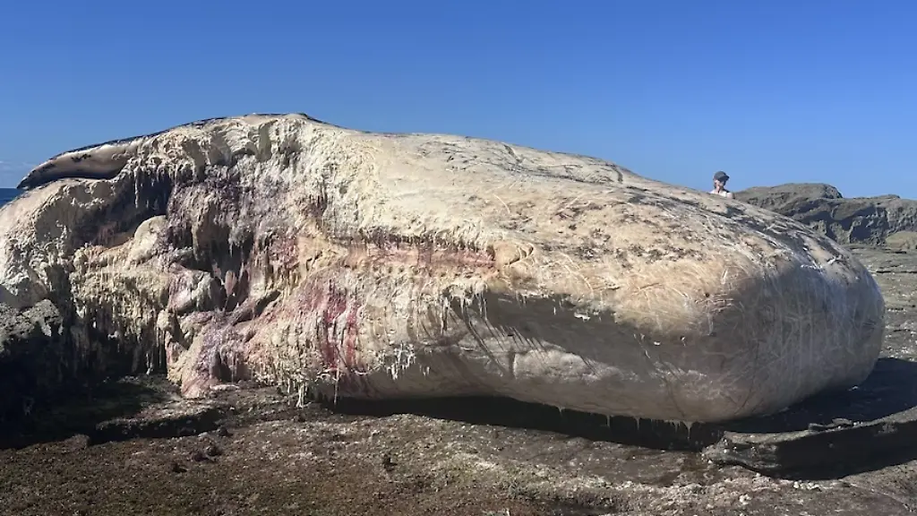 Pottwale können mehr als 50 Tonnen schwer und mehr als 20 Meter lang werden. An einem Strand vor Sydney wird ein acht Meter langes Teilstück angespült. Für Menschen stellt der Kadaver keine Gefahr dar. Die hungrigen Haie im Wasser schon.
