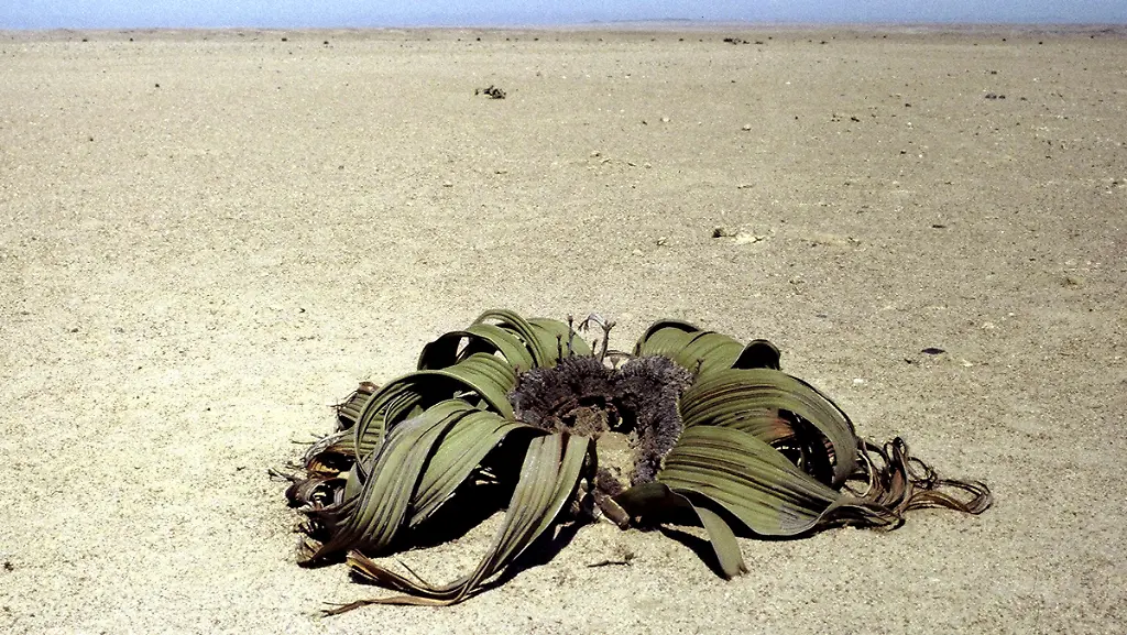 Auch der erste Blick auf die staubig-grünen Pflanzen mit ihrem Blättergewirr verstärkt das Gefühl, durch eine ferne Vergangenheit zu reisen. Welwitschien liegen vereinzelt im Geröllboden. Sie sehen wie abgestorben aus, sind jedoch höchst lebendig. Das zum Überleben notwendige Wasser ziehen die Pflanzen aus dem Nebel, der vom Meer in die Wüste zieht, erklärt die Biologiestudentin Susanne Steiner aus Wien.