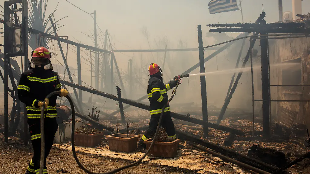 Eine sandige kleine Bucht, türkis glitzerndes Wasser - und die verkohlten Überreste einer Strandbar samt verbogener, in der Hitze geschmolzener Strandliegen. Im Südosten von Rhodos haben die Flammen an vielen Stellen sämtliche Vegetation niedergewalzt, haben sich durch Buschwerk und Wälder gefressen und erst am Meer Halt gemacht.