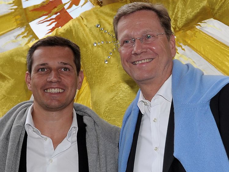 Mronz und Westerwelle bei der Premiere der Oper "Zauberflöte" auf der Seebühne im Strandbad Wannsee in Berlin.