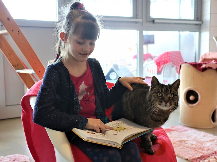 Leonie ist eine von 22 Kindern, die an dem Förderprojekt des Berliner Tierheims "Kinder lesen Katzen vor" teilnimmt. Einmal die Woche lesen die Kinder im Alter zwischen sieben und zwölf Jahren den Stubentigern im Seniorenkatzenhaus vor und verbessern so ihre Lesefähigkeiten. Die Katzen sind sehr aufmerksame Zuhörer. Sie lauschen geduldig dem Klang der Stimme, und es macht ihnen nichts aus, wenn der Lesefluss einmal ins Stocken gerät. Damit sind sie das ideale Publikum für Kinder, die wie Leonie mit dem Lesen Probleme haben.