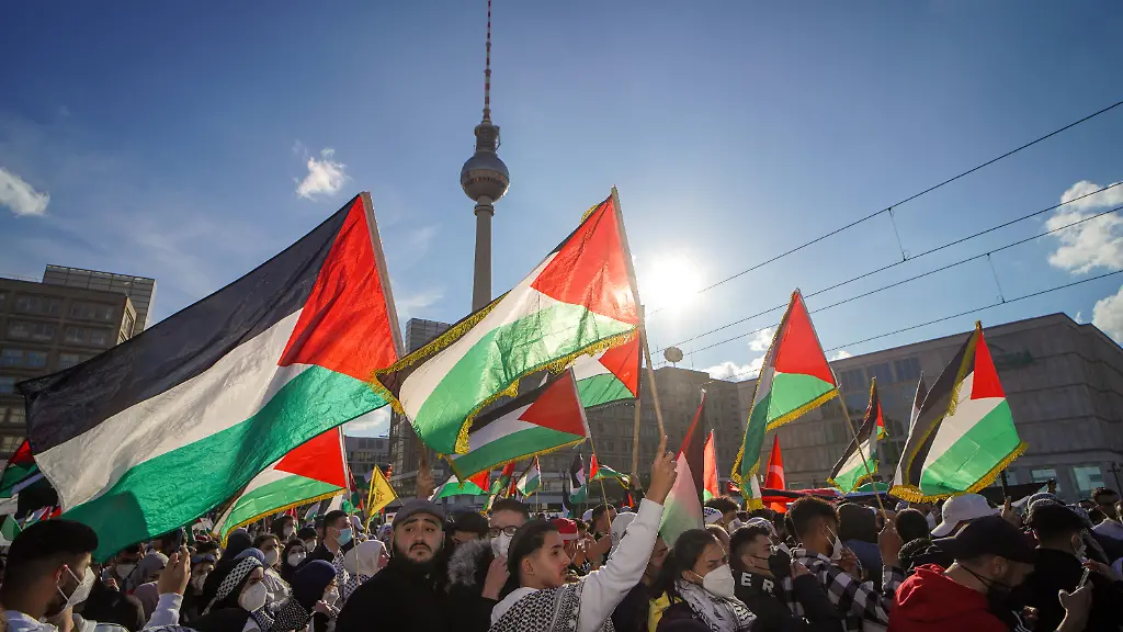 Die Demonstration unter der Überschrift "Gegen die israelische Aggression in Palästina" zog vom Alexanderplatz zum Brandenburger Tor. Viele Menschen schwenkten Palästina-Fahnen. Immer wieder skandierten Demonstranten nach Angaben der Polizei israelfeindliche Sprüche. Am Ende der Demonstration nahe dem Brandenburger Tor warf ein Teilnehmer demzufolge einen Stein auf einen Polizisten, der am Helm getroffen wurde und unverletzt blieb. Andere Demonstranten schleuderten Böller unter ein Polizeiauto. Der Fahrer erlitt hierbei ein Knalltrauma.