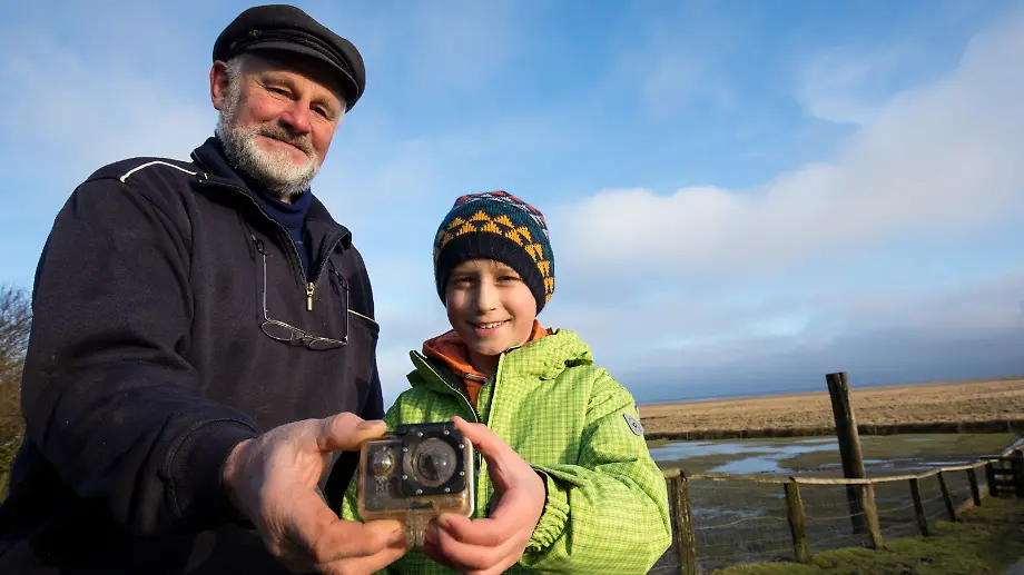 Das Watt glitzert in der Wintersonne silbrig. Langsam stapft William Etherton über den trocken gefallenen Meeresgrund. Ziel des Zehnjährigen ist die Hallig Süderoog. Auf der kleinsten ständig bewohnten Hallig im Nordfriesischen Wattenmeer will er am Wochenende seine Videokamera zurückbekommen. Vier Monate zuvor hatte das Meer die wasserdichte Kamera des Jungen vor der Ostküste Englands, in der Thornwick Bay in East Yorkshire, verschlungen.