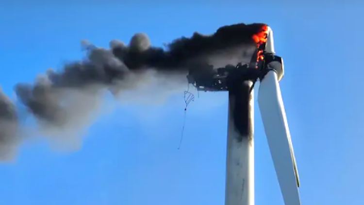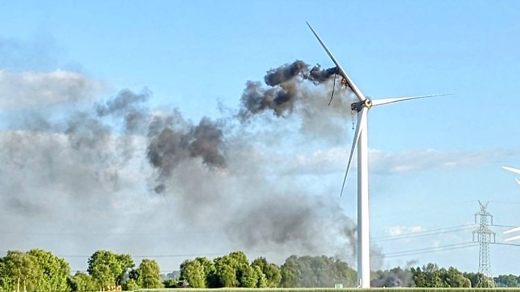 Flammen in 65 Metern Höhe Windrad brennt lichterloh - Feuerwehr kann nur zusehen