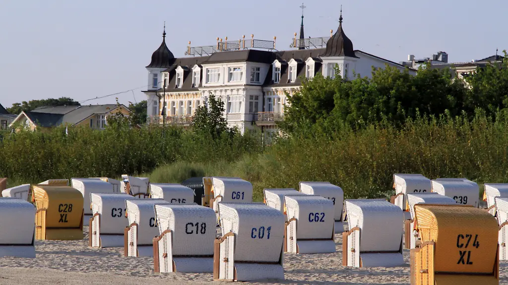 "Über der kalten Ostsee bilden sich eben viel weniger Quellwolken als über dem aufgeheizten Land", sagt einer der Rettungsschwimmer am Strand von Zinnowitz. Außerdem kämen die Tiefausläufer vom Atlantik nur abgeschwächt über Usedom an. Rügens Nachbarinsel punktet noch mit weiteren Superlativen: Elf zertifizierte Wellness-Hotels sind Europarekord. Auch der Strand ist spitze: 42 Kilometer lang und bis zu 70 Meter breit funkelt er im Sonnenlicht wie auf einer Insel der Malediven, auf die sich Hunderte Strandkörbe verirrt haben.
