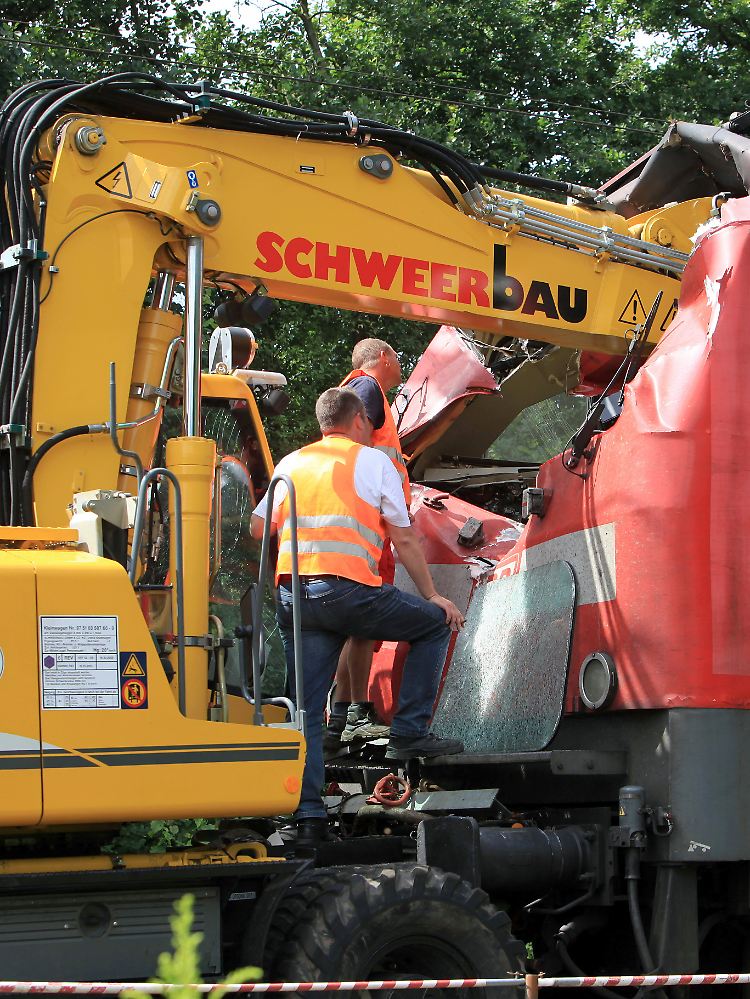 Die Schaufel des Baggers zerstörte das Führerhaus komplett. Der Zugführer konnte sich noch rechtzeitig in die hinteren Wagen flüchten.