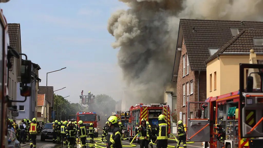 In NRW brennt ein Motorradgeschäft samt Werkstatt. Rettungskräfte sind mit einem Großaufgebot im Einsatz, dabei kommt es offenbar zur Tragödie: Elf Einsatzkräfte werden verletzt - eine Frau und ein Mann von der Freiwilligen Feuerwehr gelten als vermisst.