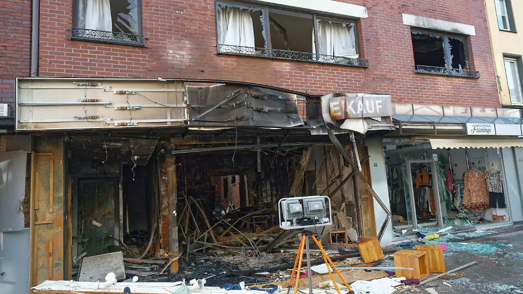 Die Detonation hatte am Donnerstagabend schwere Verwüstungen angerichtet. Ein ganzer Straßenzug war mit Scherben von Schaufenstern und Trümmern übersät, Menschen mussten aus oberen Stockwerken gerettet werden. Bis zu 25 Ladenlokale sind betroffen.